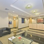 The business center houses 84 fully furnished and wired offices, two large conference rooms, a training room capable of seating up to 55 people, a large pantry/break room serving freshly brewed Starbucks coffee and a continental breakfast every morning. All office spaces for rent are equipped with state-of-the art telephone and high-speed Internet access. Virtual office space can also be rented here.